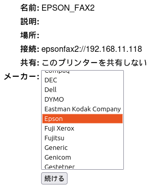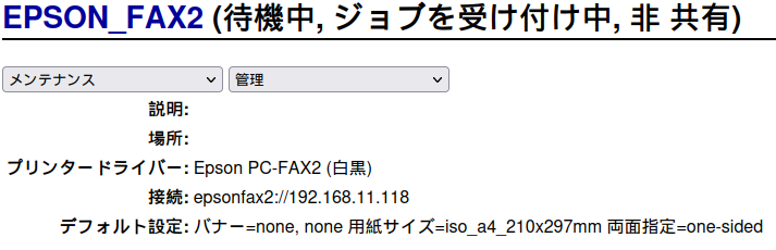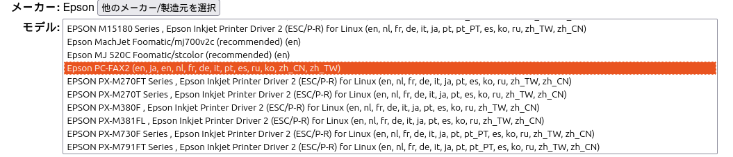 PC-Fax Driver2のPPDは、/usr/share/cups/model/Epson/ にインストールされています。 - 以下のようにCUPSへ登録されます。