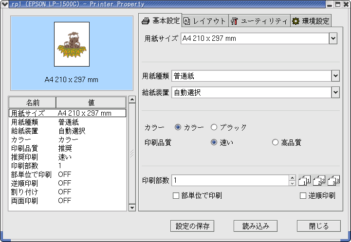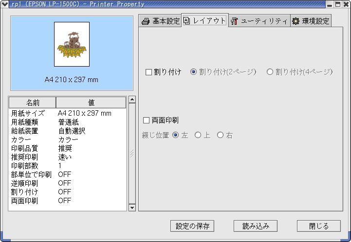 コマンドラインで指定しなくても常にその条件で印刷する事が出来ます。