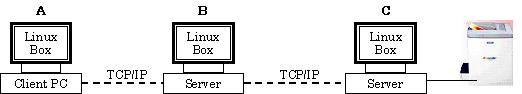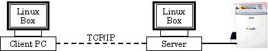 また、次のような構成でネットワーク経由でリモートプリンタに 印刷することが可能です。