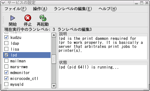 例)リモートプリンタ設定テストの手順をRedHat9を例に説明します。